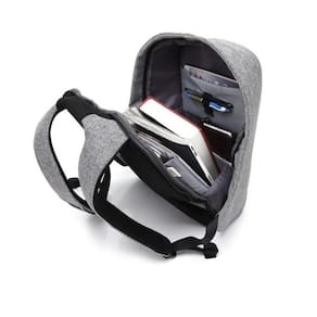 Descrição Todos os dias ocorrem 400.000 roubos. Você não precisará se preocupar com algo assim acontecendo com você ao ter esta mochila anti-roubo, pois ela tem vários bolsos camuflados, além de ser repelente à água e ter detalhes refletivos para a noite. Feito de poliéster de alta qualidade. O interior inclui compartimento acolchoado para laptop de 13”. As principais características da mochila são:\ N fecho com zíper e bolsos ocultos\ N material à prova de cortes\ N portas de carregamento USB embutidas\ N alças de segurança iluminadas\ N tecido repelente à água\ N Equilíbrio de peso\ N Alça de bagagem\ N Compartimento para laptop: 27 cm x 33 - 40 cm x 3,5 cm\ n (altura x largura x profundidade) Compartimento para tablet: 25,5 cm x 12 - 18 cm x 1 cm ((Altura x Largura x Profundidade) Peso da bolsa: 850 gramas