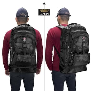 Mochila confeccionada em 100% Poliéster é muito resistente a rasgos, costura reforçada e impermeável, protegendo seus pertences do tempo. Possui 3 compartimentos para guardar seus equipamentos com , 2 bolsos com fechamento em zíper, bolsos laterais e conta ainda com fitas de compressão nas laterais e no bolso.