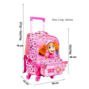 Para as pequenas que amam estar na companhia da skye, essa mochila com rodinhas e alças une tudo o que elas precisam: praticidade, conforto e muito estilo perfeita para a escola ou viagens, ela acompanha cada missão com um visual encantador. A frente em poliéster traz orelhas em pelúcia aplicadas, que dão um toque divertido e carinhoso. Com carrinho de hastes achatadas, rodinhas em gel e alças de ombro estampadas, a peça oferece diferentes formas de uso, adaptando-se à rotina com facilidade. O brilho do piping com glitter e os puxadores emborrachados personalizados completam o charme. E para deixar tudo ainda mais especial, acompanha uma bolsa lateral removível com detalhe de asas - perfeita para deixar a imaginação voar alto - frente em poliéster com orelhas em pelúcia aplicada; - puxadores emborrachados personalizados; - alça de mão acolchoada; - alças de ombro estampadas; - piping com glitter; - zíper tratorado; - acompanha bolsa lateral removível com asas; - carrinho com hastes achatadas e rodinhas em gel; - material: poliéster Dimensões: - largura: 30cm - altura: 40cm - comprimento: 15cm Peso: 1280gr Cuidados: - guarde em um local seco e arejado evitando locais úmidos. - evite colocar excesso de peso no produto para não forçar os zíperes e costuras. - proteja os objetos cortantes e/ou pontiagudos evitando o contato direto com o produto. - evitar altas temperaturas. - cores claras poderão manchar quando em contato com outros objetos ou roupas de cores pigmentadas. Dicas de limpeza: - para a limpeza utilize apenas pano úmido com sabão neutro. - não mergulhar na água e não utilizar componentes químicos, solventes ou alvejantes. - não deixar de molho e secar a sombra. Marca: Não Informado Ean: 7899768868068