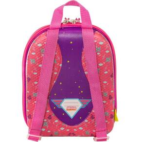 Confeccionada em EVA de alta qualidade e resistência, proporcionando um corpo rígido mas bastante flexível, forma 3D Termomoldada, processo patenteado e exclusivo. Não tem nada igual no mundo. Sistema de fechamento com zíper de qualidade em abrtura 360. Seu interior possui um compartimento com uma malha elástica. Possui 2 alças de costas em nylon, com fivelas de ajuste em plástico, alça de mão em nylon na parte superior, superfície interna e externa impermeáveis, o que protege contra sujeiras e facilita a impleza. Basta um pano úmido. Área de identificação onde pode ser colocado o nome da criança, o nome dos pais e telefones de contato.