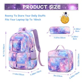 PIG PIG GIRL Mochila infantil para meninas, mochilas escolares para estudantes do ensino médio, bolsa de livros para escola primária, Galáxia roxa, Bonito - Design requintado: esta mochila para meninas combina a cor vibrante dos sonhos com um padrão fofo, que ambos os elementos adoráveis e românticos sempre inspiram a imaginação do seu filho e os mantêm com um clima alegre - Confortável e respirável: esta mochila escolar para meninas apresenta um design ergonômico, adotada com uma esponja respirável e espessa da alça de ombro acolchoada e painel traseiro, esta linda mochila deixa as meninas confortáveis de usar, relaxando os ombros e reduzindo a pressão, a faixa refletiva pode lembrar os veículos que passam para evitar - Dimensões espaçosas: 11,8 x 7,08 x 18,11 polegadas / 30 x 18 x 46 cm (L x P x A); Peso: 0,85 kg / 1,87 lb; Capacidade: 24,84 L; Compartimento principal com capa para laptop que é espaçoso o suficiente para caber em laptop de 15 polegadas, iPad, fichários A4, livros de texto, lancheira, etc. O segundo bolso serve para itens essenciais da escola, cadernos, estojo de lápis. Os bolsos superiores transparentes e os 3 pequenos bolsos no painel frontal podem guardar as coisas do dia a dia e acessá-las rapidamente; os bolsos laterais elásticos são para garrafa de água e guarda-chuva - Material durável: Feita de poliéster resistente à água, resistente a rasgos e espesso, esta mochila feminina com o acabamento requintado de costura resistente e zíperes suaves garantem o uso com um desempenho de longo prazo - Mochila ideal: recomendada para meninas de 6 a 14 anos de idade. Esta mochila escolar para meninas é ótima para o ensino fundamental, ao ar livre, compras, viagens. É um item essencial para a temporada de volta às aulas para sua filha em feriados e festivais.
