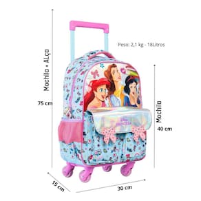 Mochila com rodinhas princesas disney - brilho, magia e funcionalidade para as pequenas Prepare-se para encantar com a mala escolar com rodinhas princesas disney com design pensado para facilitar o dia a dia escolar das pequenas, ela une charme, conforto e muita praticidade com o brilho especial do mundo encantado da disney. A frente em pvc iridescente garante um efeito mágico de brilho que chama atenção por onde passa. O modelo conta com dois bolsos frontais com tampa, perfeitos para organizar materiais e acessórios, além de patches emborrachados que trazem um toque divertido e personalizado. As alças de ombro estampadas e a alça de mão acolchoada proporcionam conforto no manuseio. Já o carrinho com hastes achatadas e as rodinhas em gel garantem mais estabilidade e leveza ao deslizar, facilitando o transporte pelas pequenas. Produzida em poliéster resistente e com acabamento de alta qualidade, essa mala licenciada oficial disney é ideal para tornar a rotina escolar ainda mais mágica - frente em pvc iridescente com brilho encantador; - dois bolsos frontais com tampa; - patches emborrachados personalizados; - puxadores emborrachados; - zíper tratorado de plástico; - alças de ombro com estampada; - alça de mão acolchoada; - bolsos laterais em mesh; - carrinho com hastes achatadas e rodinhas em gel; - material: poliéster Dimensões: - largura: 30cm - altura: 40cm - comprimento: 15cm Peso: 1050gr Cuidados: - guarde em um local seco e arejado evitando locais úmidos. - evite colocar excesso de peso no produto para não forçar os zíperes e costuras. - proteja os objetos cortantes e/ou pontiagudos evitando o contato direto com o produto. - evitar altas temperaturas. - cores claras poderão manchar quando em contato com outros objetos ou roupas de cores pigmentadas. Dicas de limpeza: - para a limpeza utilize apenas pano úmido com sabão neutro. - não mergulhar na água e não utilizar componentes químicos, solventes ou alvejantes. - não deixar de molho e secar a sombra. Marca: Não Informado Ean: 7899768866750