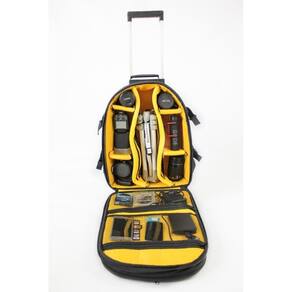 suporte frontal para notebook de até 17’, totalmente acolchoada , permitindo assim maior segurança ao guardar seu equipamento. Carrinho destacável, pode poderá transportar a sua mochila com ou sem carrinho. A mochila photocar da crasy, possui cor interna amarelo ouro, facilitando assim a localização de todo seu equipamento e acessório na mochila, exterior preto. Principais características: