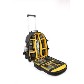 carrinho para facilitar o transporte. Medida externas: c36xl25xa50cm c= frente l= lateral a=altura medidas internas: c33xl22xa47cm c= frente l= lateral a=altura possui 7 divisórias ajustáveis e pressas em tiras aderentes para maior segurança do seu equipamento. Fabricada em nylon 1200 acolchoado
