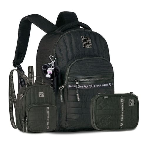 Mochila Rebeca Bonbon Kit Escolar C Lancheira E Estojo Preto