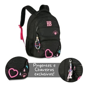 Cheia de charme e personalidade, a Mochila de Costas Rebecca Bonbon RB27015 é a escolha ideal para quem ama estilo, organização e praticidade no dia a dia Confeccionada em material soft com matelassê em formato de corações, ela encanta pelos detalhes delicados e acabamento premium. Possui plaquinha de metal exclusiva Rebecca Bonbon, cadarço acetinado colorido e puxadores de zíper personalizados, que completam o visual moderno e divertido. Acompanha cartela de adesivos. O compartimento principal é espaçoso, ideal para levar livros, cadernos e materiais escolares com conforto e segurança. Conta ainda com dois bolsos frontais com fechamento por zíper, perfeitos para manter os objetos mais sempre à mão, além de bolsos telados laterais para garrafinhas e bolso antifurto na parte de trás. A RB27015 foi feita pensando no conforto: suas alças de costas são acolchoadas, ajustáveis e ergonômicas, e a alça de mão superior reforçada garante praticidade no transporte. Outro grande diferencial é a alça carona, perfeita para acoplar em malas e facilitar a locomoção em viagens ou passeios. E, para deixar tudo ainda mais encantador, a mochila acompanha um chaveiro exclusivo de miçangas, um mascote 3D superfofo e uma corrente com coração emborrachado e pingentes, além de uma cartela de adesivos exclusivos Rebecca Bonbon Disponível em três cores incríveis - Preto, Rosa e Roxo -, essa mochila é perfeita para acompanhar o estilo e o brilho de quem adora moda e diversão em cada detalhe Dimensões aproximadas: 44x33x14cm