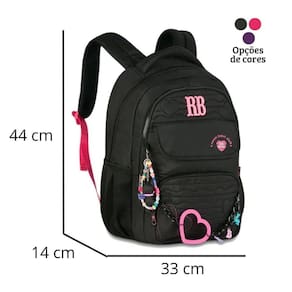 Cheia de charme e personalidade, a Mochila de Costas Rebecca Bonbon RB27015 é a escolha ideal para quem ama estilo, organização e praticidade no dia a dia Confeccionada em material soft com matelassê em formato de corações, ela encanta pelos detalhes delicados e acabamento premium. Possui plaquinha de metal exclusiva Rebecca Bonbon, cadarço acetinado colorido e puxadores de zíper personalizados, que completam o visual moderno e divertido. Acompanha cartela de adesivos. O compartimento principal é espaçoso, ideal para levar livros, cadernos e materiais escolares com conforto e segurança. Conta ainda com dois bolsos frontais com fechamento por zíper, perfeitos para manter os objetos mais sempre à mão, além de bolsos telados laterais para garrafinhas e bolso antifurto na parte de trás. A RB27015 foi feita pensando no conforto: suas alças de costas são acolchoadas, ajustáveis e ergonômicas, e a alça de mão superior reforçada garante praticidade no transporte. Outro grande diferencial é a alça carona, perfeita para acoplar em malas e facilitar a locomoção em viagens ou passeios. E, para deixar tudo ainda mais encantador, a mochila acompanha um chaveiro exclusivo de miçangas, um mascote 3D superfofo e uma corrente com coração emborrachado e pingentes, além de uma cartela de adesivos exclusivos Rebecca Bonbon Disponível em três cores incríveis - Preto, Rosa e Roxo -, essa mochila é perfeita para acompanhar o estilo e o brilho de quem adora moda e diversão em cada detalhe Dimensões aproximadas: 44x33x14cm