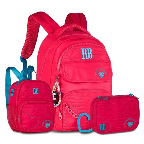 O Kit Escolar Rebecca Bonbon RB27015 é pura elegância, estilo e praticidade Ideal para acompanhar a rotina escolar com muito charme, o conjunto é composto pela Mochila de Costas RB27015, Lancheira RB27011 e Estojo RB27013, todos com design encantador e acabamento premium. A mochila RB27015 é confeccionada em material soft com matelassê de corações, trazendo uma aparência moderna e delicada. Conta com compartimento principal espaçoso, bolsos frontais com zíper, bolsos telados laterais, bolso antifurto traseiro e alça carona para acoplar em malas. As alças acolchoadas e ajustáveis garantem conforto, e os detalhes personalizados, como plaquinha de metal, cadarço acetinado, mascote 3D, chaveiro de miçangas e corrente com coração emborrachado, fazem toda a diferença. A lancheira RB27011 é o complemento ideal: possui amplo espaço interno com revestimento térmico, mantendo os alimentos sempre frescos. Conta com bolsinho frontal com fechamento por zíper, alça de mão superior, alça transversal ajustável e alça carona, perfeita para acoplar na mochila. O estojo RB27013 traz praticidade e muito charme, com amplo espaço interno e puxadores personalizados, ideal para armazenar lápis, canetas e pequenos acessórios com organização e estilo. Disponível nas cores: Preto, Rosa e Roxo. Dimensões aproximadas: Mochila: 44x33x14cm. Lancheira: 20x24x14cm. Estojo: 22x16x6cm. Marca: Não Informado Ean: 7795028699208
