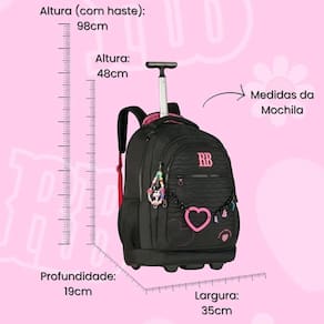 Mochila Rebecca Bonbon Rodinhas Juvenil Escolar Mala Preto