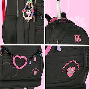 Mochila Rebecca Bonbon De Rodinhas Juvenil Escolar Mala Teen - Clio Style A Mochila Rebecca Bonbon é perfeita para meninas que buscam praticidade e estilo. Feita com materiais de alta qualidade, essa mochila de rodas é resistente e espaçosa, ideal para carregar livros, cadernos e outros itens escolares. Possui compartimentos bem organizados, alças convenientes e acolchoadas para maior conforto, além de um design moderno e delicado, com detalhes que encantam. Características Mochila: Alça de mão e costas Bolsos laterais telados Bolso interno para lápis e caneta Chaveiro e corrente personalizado Mascote em 3D Forro rosa logado Puxador personalizado Zíper tratorado Cadarço acetinado logado Placa de metal colorida Proteção para asas e rodas Especificações Mochila: Marca: Rebecca Bonbon Medidas Aproximadas Mochila A x L x P : 48cm x 35cm x 19cm Altura com a haste levantada: 98cm Aprox Peso: 2.022kg Aprox Capacidade: 31L Composição do produto: Poliéster Polegadas: 19 Compartimento para Notebook: 15 Conteúdo da Embalagem: Rb27009 - 1 Mochila de Rodas Rebeca Bonbon As cores podem variar entre as imagens mostradas acima e o produto. Imagens meramente ilustrativas. Todas as informações divulgadas são de responsabilidade exclusiva do fabricante. de 90 dias contra defeito de fabricação.