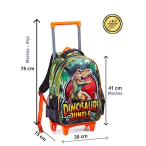O Kit Escolar Dinossauro Rex Mochila Rodas Costas + Lancheira é perfeito para acompanhar as aventuras escolares das crianças. Com um design divertido e estilizado de dinossauro, este conjunto é ideal para os pequenos fãs dessas criaturas pré-históricas.