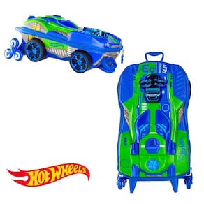 Kit Mochila 3D de Rodas Dune a Soar Motor Azul Hot Wheels e Lancheira - Diplomata