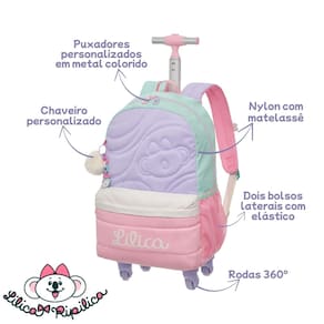 Kit Escolar Lilica Ripilica Creamy – Mochila de Rodas + Lancheira Térmica + Estojo Box Encante-se com o kit completo Lilica Ripilica Creamy, perfeito para deixar a volta às aulas muito mais charmosa, prática e organizada! Com design delicado, acabamento de qualidade e muito estilo, esse conjunto é ideal para acompanhar a rotina escolar das meninas. Tudo isso com o toque encantador da Lilica, para transformar cada dia de aula em uma nova aventura!