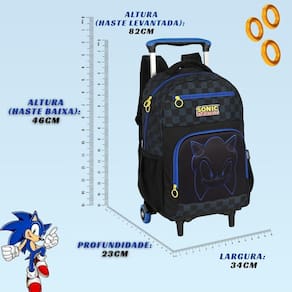 Mochila Rodas Sonic Juvenil Escolar Jogo Mala Meninos Preto