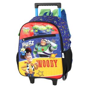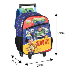 Mochila Escolar de Rodinhas Toy Story   A Mochila de Rodinhas do Toy Story Luxcel é perfeita para transportar material escolar ou para uso diário. Com um design moderno e funcional, essa mochila possui amplo espaço interno, permitindo que você carregue tudo o que precisa de forma organizada e prática. Essa mochila possui um compartimento principal grande, com espaço de sobra para seus livros, cadernos e demais itens, além disso, conta com dois bolsos laterais para garrafa, ou outros objetos pequenos. As alças acolchoadas e ajustáveis proporcionam mais conforto no transporte, enquanto o formato ergonômico distribui melhor o peso nas costas. É ideal para escola, passeios e outras atividades do dia a dia.   Características da Mochila Escolar: - 1 Bolso Principal com bastante espaço - 1 Bolso Frontal com fechamento em zíper - 2 Bolsos laterais para squeeze - Alças de costas acolchoadas e ajustáveis - Alça de mão reforçada na parte superior - Tagg de identificação - Carrinho em metal e rodinhas de silicone - Fechamento em Zíper personalizado - Material: 70% Poliéster 30%PVC - Forro: 100% Poliéster   Dimensões Aproximadas: - Altura: 39 cm - Largura: 29 cm - Profundidade: 15 cm