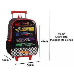 Mochila De Rodinhas Hot Wheels Luxcel Infantil Escolar A Mochila de Rodinhas Escolar Hot Wheels da Luxcel é ideal para os fãs da famosa marca de carrinhos. Com um design super radical e estampa incrível, ela vai deixar os passeios e idas para a escola muito mais divertidos. Feita em 70% poliéster e 30% PVC, essa mochila possui alça de mão e alça de costa macia e reforçada, proporcionando conforto durante o uso. Além disso, possui um amplo bolso principal para guardar todo o material escolar, dois bolsos laterais para garrafinhas e um identificador nas costas. Características da Mochila Escolar: - 1 Bolso Principal com bastante espaço - 2 Bolsos laterais para squeeze - Alça de mão reforçada na parte superior - Alça de costa acolchoada - Carrinho em metal e rodinhas de silicone - Fecho com zíper - Taggy identificação - Material: 70% Poliéster e 30% PVC Dimensões da Mochila Escolar: Altura: 41 cm Largura: 30 cm Profundidade: 14 cm Conteúdo: - 1 Mochila