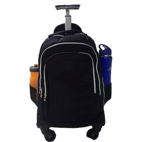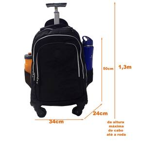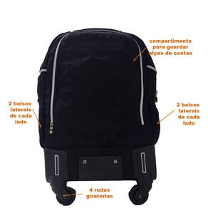 A mochila é feita em poliéster tactel, com design diferenciado, possui rodinhas 360°