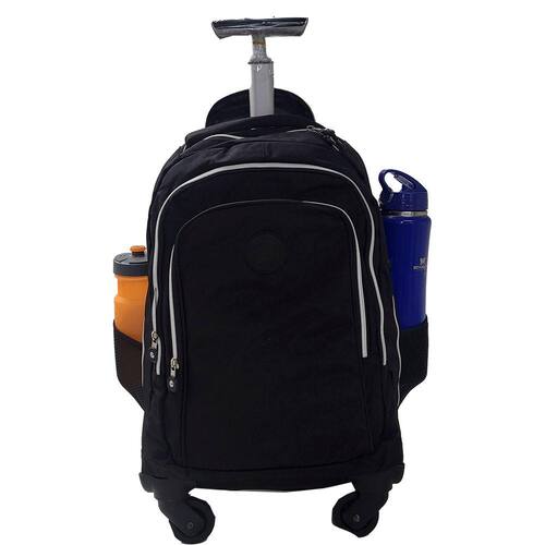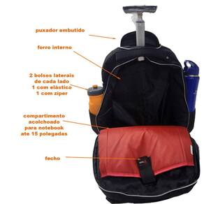 -Carrinho em alumínio - o que torna a mochila mais leva - com puxador e rodinhas 360° graus.
