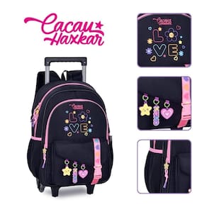 Mochila Rodinhas Cacau Haxkar Bolsa Escolar Feminina Premium