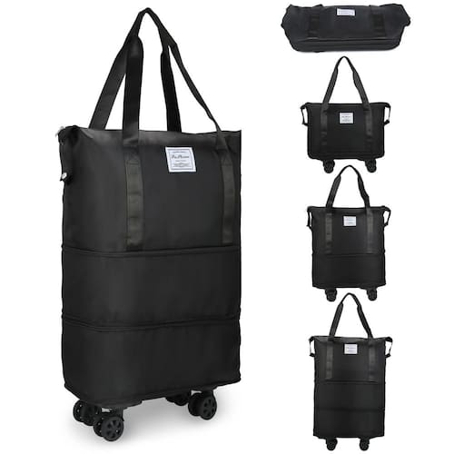 Bolsa esportiva VOOWO expansível com rodas, bolsa de viagem dobrável para viagens, bolsa de fim de semana para mulheres, bolsa de viagem com rodas giratórias, bolsa de ginástica grande - ?Bagagem de mão de alta qualidade com rodas?A bolsa de bagagem com rodas é feita de tecido Oxford resistente ao desgaste, resistente a arranhões e à prova d'água com forro de poliéster. Possui uma alça reforçada para facilitar o transporte e puxar, zíper de metal durável e, na parte inferior, há quatro rodas universais silenciosas de 360° removíveis e instaláveis, permitindo um movimento suave e flexível em qualquer direção. Esta bolsa esportiva não é apenas elegante, mas também construída para suportar os rigores da viagem - ?Bolsa esportiva dobrável e expansível para viagens?Esta bolsa de viagem expansível tem dois zíperes na parte inferior. Você pode abrir ou fechar os zíperes na parte inferior da bolsa de viagem para aumentar ou diminuir a capacidade, o tamanho normal é 39,9 x 22 x 32 cm, expandir a primeira camada aumenta a altura para 49 cm e a segunda camada aumenta para 66 cm. Esta bolsa de viagem pode expandir de 28 L para um máximo de 58 l. Ajuste seu espaço de armazenamento conforme necessário sem se preocupar com restrição de bagagem - ?Bolsa esportiva com rodinhas giratórias?Esta bolsa esportiva para viagens está equipada com quatro rodas removíveis na parte inferior, o que facilita puxar mesmo em superfícies ásperas ou irregulares, permitindo que a bolsa se mova suavemente em qualquer direção, facilitando a navegação por aeroportos, estações de trem ou ruas movimentadas. com rodas giratórias de 360°, você não precisa inclinar ou levantar a bolsa de viagem, o que reduz a tensão em seus braços e ombros durante a viagem - ?Bolsa grande para viagem com vários compartimentos dentro?Esta bolsa de fim de semana tem 1 compartimento principal com 1 bolso interno com zíper para secar e 2 bolsos com compartimentos. O compartimento principal oferece amplo espaço para seus itens e roupas maiores. O bolso interno com zíper e seco permite que você mantenha itens molhados ou sujos separados do resto de seus pertences. Os bolsos com compartimentos fornecem espaços designados para itens essenciais menores, facilitando o acesso ao seu passaporte, telefone, chaves ou qualquer outro item pequeno - ?Bolsa esportiva multiuso para viagens?Esta bolsa feminina de fim de semana atende a uma variedade de necessidades. Seu tamanho perfeito a torna ideal para embalar roupas essenciais, dispositivos eletrônicos, calças, sapatos e produtos de higiene pessoal para viagens curtas com duração de 5 a 7 dias. É adequada para várias ocasiões, incluindo atividades esportivas, viagens, escapadelas de fim de semana, compras, caminhadas e acampamento. você pode usar esta bolsa de fim de semana como bolsa noturna, bolsa de ginástica de viagem ou bolsa de bagagem expansível para todas as suas aventuras