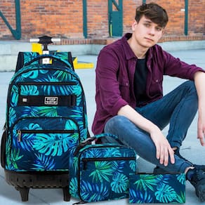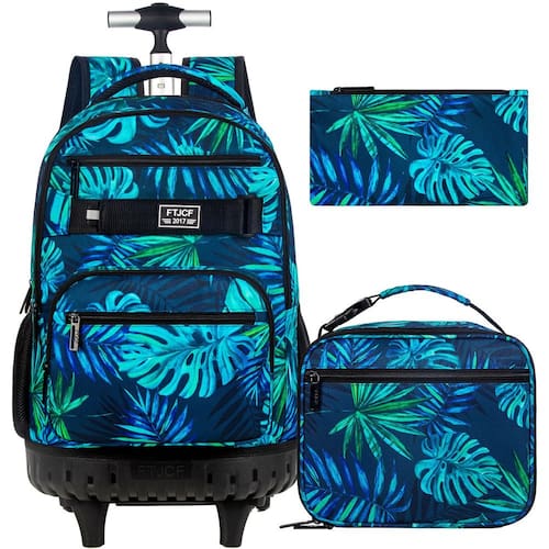 ZLYERT 3 unidades de mochila com rodinhas para mulheres e homens, mochilas com rodas para meninos e adultos, mochila de viagem com rodas, Folha verde, Moderno - Mochila com rodinhas 3 em 1: inclui uma mochila de rodinhas para meninos (48 x 33 x 20 cm, inclusa), uma lancheira e uma bolsa de lápis. A estampa de folha verde elegante é o presente ideal para familiares e amigos! - Mochila de rodas multifuncional: a parte inferior pode ser dobrada, para uso diário você pode alternar entre uma mochila de rodinhas ou uma mochila, e há alças elegantes na parte superior para decorações penduradas. - GRANDE CAPACIDADE: As mochilas com rodinhas contêm 2 compartimentos grandes separados e 3 bolsos frontais com zíper, seja um laptop para uso no escritório ou livros de papelaria para a escola podem ser facilmente acomodados. - Material durável: esta mochila com rodinhas para adultos é feita de material impermeável premium com costura roscada aprimorada nas costuras e alças respiráveis atualizadas para torná-la mais durável. - Mochila de alta qualidade com rodas: a mochila com rodinhas foi atualizada com uma base mais ampla e postes de liga de alumínio de alta resistência para garantir que você possa usá-la de forma mais confortável e suave.
