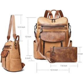 BOLSA DE MOCHILA SHRRIE PARA MULHERES; CARACTERÍSTICAS Material externo: couro PU de alta qualidade Tamanho: (C) 12,5 x (L) 12,5 x (A) 33 cm Peso: 900 g. Estrutura: 8 bolsos Mochila feminina leve para viagem com detalhes Design de mochila aberta superior Costura reforçada. Parte traseira da bolsa com costura reforçada para sua durabilidade. Material de alta qualidade. Todos os acessórios são feitos de liga metálica, anticorrosão, modernos e duráveis. Formas de transporte conversíveis A alça longa removível permite que a bolsa seja usada como bolsa de ombro ou mochila. Presentes de Natal para mulheres, presentes de natal para mãe, presentes para avó, presentes de melhor amiga para mulheres, presentes de natal 2024 - Material de alta qualidade – Mochila feminina feita de couro sintético macio e durável e forro de tecido, esta mochila de couro tem um fecho de zíper suave e durável e cada costura é reforçada para maior durabilidade. - Vários compartimentos – vários bolsos podem manter suas coisas bem organizadas. A mochila feminina tem 1 compartimento superior com fecho de zíper, 1 bolso interno com zíper, 2 bolsos internos, 3 bolsos frontais com zíper, 1 bolso com fivela magnética, 2 bolsos laterais e 1 bolso traseiro com zíper. - Bolsa de mochila no tamanho certo – o tamanho da mochila é de 12,5 x (L) 12,5 x (A) 33 cm, comporta confortavelmente um laptop de 14 polegadas ou menos, iPads de todos os tamanhos, revistas, guarda-chuvas, garrafas de água e outros itens pequenos. Você pode usá-la como uma mochila de uso diário ou como uma mochila de viagem. - Mochila multiuso – Existem três opções de transporte diferentes para várias ocasiões. Você pode usá-la como uma bolsa de ombro especial, uma mochila casual ou uma mochila elegante com alça superior. Ótima como uma bolsa de fim de semana, bolsa universitária, bolsa de viagem e bolsa de trabalho que pode guardar seus itens essenciais diários. - Presente para mulheres – Mochila de couro ideal para mulheres carregarem. Compras, viagens, encontros, caminhadas, parques de diversão, etc. Além disso, esta linda bolsa de ombro pode ser usada como presente de Natal para mulheres, presentes para mãe, presentes para avó, amante, amiga, filha e você mesmo para o dia das mães, Natal, Ação de Graças, aniversário, etc
