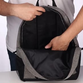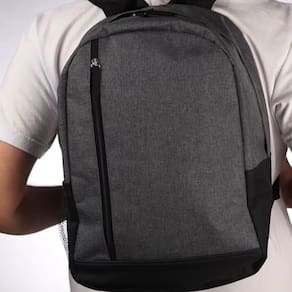 Mochila sem compartimento para notebook. Conta com bolso lateral em malha, compartimento frontal em zíper, além de alça de mão e de ombro.