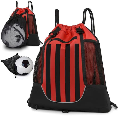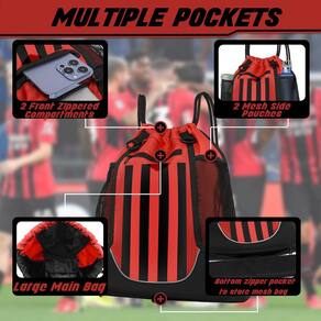 - Confortável e resistente: projetada com poliéster resistente à água e tiras de cordão, esta mochila de basquete oferece durabilidade leve sem comprometer o conforto durante todo o dia. As alças de ombro de náilon reforçado apresentam costura de camada dupla para maior capacidade de carga, enquanto o cordão respirável e forte reduz a fadiga do ombro durante o uso prolongado