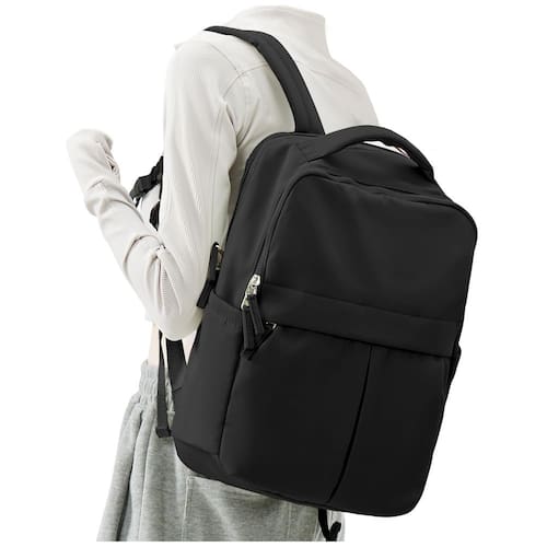 Mochila preta suratio para laptop feminina Mochila de ginástica Mochila casual Mochila de viagem para viajar de avião Mochila de trabalho para homens Mochila leve para computador Mochila para professores universitários - Material de boa qualidade: a mochila preta para laptop é feita principalmente de fibra de poliéster, que não é apenas leve, durável, fácil de limpar, mas também impermeável, não tem medo de pequenos respingos de água e pode proteger seus pertences. - Grande capacidade: mochila para laptop (L* W* H*) 30 cm* 13 cm* 43 cm/11,8"* 5,1"* 16,9". A mochila tem um bolso individual para laptop com uma divisória que pode acomodar um laptop de 14 polegadas; 1* bolso oculto com zíper na parte traseira que pode conter itens importantes, como cartões de identificação; 2* bolsos laterais que podem conter guarda-chuvas ou garrafas de água; 1* bolso com zíper na frente e 1* bolso principal de grande capacidade; o bolso principal pode conter revistas, roupas, etc., e 1* compartimento e 2* bolsos pequenos dentro do bolso principal. - Confortável e conveniente: as alças da mochila para laptop são equipadas com almofadas embutidas, de textura macia e as alças podem ser ajustadas livremente para tornar o ombro mais confortável; a mochila de viagem tem uma alça de bagagem na parte traseira, que pode ser fixada na alavanca da mala para facilitar o transporte durante a viagem. - Porta de carregamento: a mochila para laptop foi projetada com uma porta USB na lateral para conexão ao cabo de carregamento. Você pode conectar a alimentação móvel por meio desta porta USB para carregar seu celular ou outros produtos eletrônicos ao caminhar ou andar de bicicleta, proporcionando conveniência para viagens longas. - Cenários amplamente aplicáveis: as mochilas casuais Daypack são de tamanho adequado, leves e podem acomodar muitos itens. Pode ser usada como mochila universitária, mochila de viagem, mochila para computador e mochila de trabalho. Adequado para estudos universitários, viagens de negócios, passeios, atividades ao ar livre e uso diário, também é adequado como presente para amigos, familiares ou calouros da faculdade.