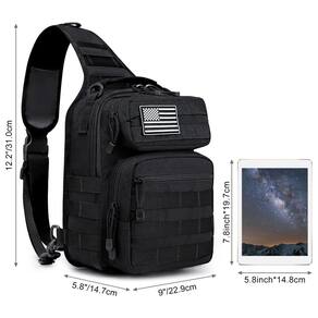 Esta é uma bolsa tiracolo ambidestro para transporte rápido e sem usar as mãos. Detalhes: Compartimento principal: 24 x 9,5 x 31 cm (C x L x A) Compartimento frontal pequeno: 16,5 x 5 x 9,5 cm Compartimento frontal maior: 18 x 5 x 20 cm. Bolso no painel traseiro: 22 x 25 cm. Volume: 12L ou mais Você pode levar G4Free bolsa como uma pequena mochila tiracolo atualizada. A capacidade permite que você tenha mais necessidades organizadas. - Ótima mochila EDC pequena --- o pacote inteiro tem 31 x 23 x 14,7 cm (C x L x A): o compartimento principal tem 29 x 22 x 8,6 cm (C x L x A): o compartimento frontal pequeno tem 16,8 x 6,6 x 4,3 cm; o compartimento frontal maior tem 16,8 x 19 x 5 cm. cm; o suficiente para carregar 2 iPad Pro de 1,8 polegadas, chaves, carteira, celular, garrafa de água, carregadores, etc. - Grande capacidade --- exceto pelo sistema Molle, que é de grande ajuda para expandir mais espaço, existem cinco compartimentos; um compartimento principal, três compartimentos frontais, um bolso no painel traseiro e alguns bolsos ocultos para transporte. Ótima para bolsa EDC Sling Bag. - Design humanizado --- o tamanho do cinto removível pode ser de até 86 cm. É útil consertar a capa para corridas e caminhadas. Equipado com um adesivo mágico de fixação, você pode usá-lo para segurar o cinto de forma conveniente e flexível. - OCASIÃO --- Perfeita para bolsa EDC ou bolsa tiracolo de viagem. Adequada para passeios de um dia, caminhadas, caminhadas diárias, academia, ciclismo e até acampamento, onde você pode precisar de alguns lanches ou outros itens relativamente pequenos. - GARANTIA --- Garantimos a durabilidade de nossos produtos. Se houver algum problema de qualidade, sinta-se à vontade para entrar em contato conosco para uma solução. Além disso: a bolsa vem com um emblema de bandeira .