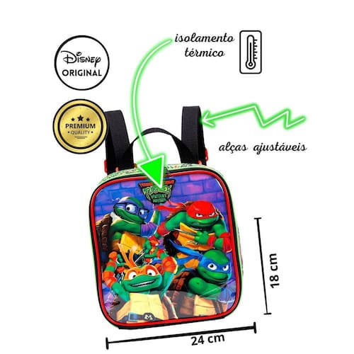 A Lancheira Térmica Tartarugas Ninjas Disney é o acessório perfeito para acompanhar seu filho na hora do lanche. Produzida em poliéster de alta qualidade, essa lancheira é resistente e durável.