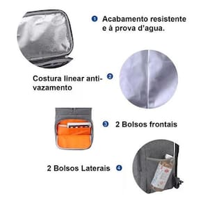 Características: - Material: oxford + alumínio folha - Dimensões: 42x29x19 altura x largura x profundidade - Capacidade: 20 litros - Não vaza - Revestimento interno térmico