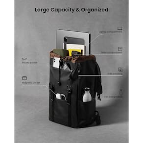 tomtoc Mochila para laptop com aba de 22L, leve, resistente à água e casual, Escuro., Mochilas Daypack - tomtoc Mochila Vintage Collection - VintPack TA1: a mistura perfeita de estilo vintage e praticidade. Com uma capacidade espaçosa de 22 L e compartimento principal espaçoso, esta mochila tem tudo o que você precisa para viagens urbanas e excursões ao ar livre. Possui um design clássico de aba, tanto para ser elegante quanto resistente à chuva - Grande capacidade e organização: o VintPack oferece amplo espaço de armazenamento para atender a todas as suas necessidades de viagem: um bolso superior conveniente, um bolso com zíper e um bolso magnético na frente para acesso rápido aos seus itens essenciais. Dois bolsos laterais ajustáveis podem acomodar garrafas de tamanhos diferentes. Uma entrada lateral de acesso rápido adicionada para fácil acesso sem abrir a bolsa - Se importa com seus dispositivos? Nós entendemos: para manter seus equipamentos digitais seguros e salvos, adotamos o design sofisticado de almofada acolchoada com forro macio no interior, durável contra choques ou choques durante a viagem. Nada com que se preocupar, desde que coloque as coisas no lugar - Transporte grande, sensação leve: além do painel traseiro acolchoado e respirável para uso prolongado, as alças acolchoadas aprimoradas pelo ajustador de alça YKK para manter o comprimento facilmente ajustável, também fornecem conforto para cargas grandes. O painel traseiro apresenta um design de alça de bagagem que se encaixa perfeitamente sobre o guidão de bagagem, satisfazendo vários cenários de viagem. Mantém uma sensação leve, não importa mais ou menos carregada - Detalhes em mente: uma alça superior junto com uma alça no interior sob a aba, facilitando a movimentação da mochila a qualquer momento. Um design de fecho de cordão retrô, fácil para os usuários ajustarem o diâmetro da mochila. Ambos os fechos são aprimorados pela fivela Durafex e Anmco de alta qualidade, que equilibra durabilidade e estilo