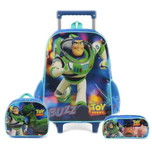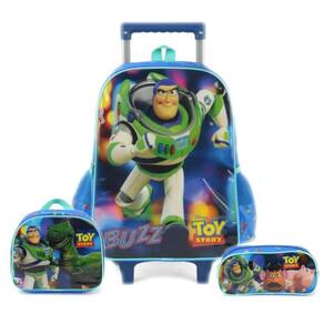 Mochila Toy Story De Rodas Com Lancheira e Estojo Escolar - LuxcelA Mochila Escolar infantil Toy Story chegou para te acompanhar no dia a dia Totalmente inspirado na divertida historia do Woody, Buzz e suas aventuras. Estampa do Buzz correndo, ocupando a face frontal da mochila. Espalhadas ao longo das faces superior e lateral, diversos símbolos das aventuras de Toy Story.Kit fabricados em poliéster de alta qualidade, sendo as estampas recobertas com proteção de pvc cristal - material que confere um lindo brilho, bem como resistência e mais facilidade para limpar, basta um paninho úmido A Mochila Possui rodinhas em gel rígido, bastante resistente e durável, e fecho a zíper, alça de mão na parte superior, puxador retrátil em alumínio e pés de apoio em frente às rodinhas permitindo apoiar a mochila na vertical . Não possui ALÇA de costasA lancheira é produzida possui forro térmico na parte interna, muito útil para manter a temperatura dos lanches durante uma manhã ou tarde na escola. Alça de mãos e alça de ombros, para facilitar o transporte em qualquer situação. Na parte traseira, a lancheira possui cinta elástica, muito útil para afixar a lancheira no puxador metálico da mochila, bem como uma etiqueta para identificação pessoal. Estojo personalizado com estampa divertida e amplo espaço.Características:- Compartimentos com zíper- Bolso Frontal grande- Bolsos Laterais para levar garrafinha.- Rodinhas de Silicone- Fácil de Limpar- Lancheira Térmica- Estojo com compartimento únicoEspecificações:- Marca: Luxcel- Material: Poliéster, PVC cristal - Tamanho Mochila: A x L x P : 41 x 30 x 14 cm- Tamanho Lancheira A x P x L : 22 x 17 x 18 cm- Tamanho Estojo: A x L x P : 5 x 22 x 14 cm - Referência do Fabricante Mochila: IC37532TY- Referência do Fabricante Lancheira: LA37533TY- Referência do Fabricante Estojo: EI37534TY Conteúdo da embalagem:- 1 Mochila De Rodas Toy Story- 1 Lancheira Térmica - 1 Estojo PersonalizadoAs cores podem variar entre as imagens mostradas acima e o produto. Imagens meramente ilustrativas.Todas as informações divulgadas são de responsabilidade exclusiva do fabricante.Garantia de 90 dias contra defeito de fabricação.
