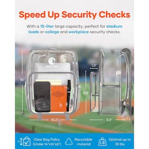 Apresentamos nossa mochila grande transparente de 15L, a melhor solução para estudantes que buscam espaço adicional. Projetada para acomodar laptops e dispositivos de 14 polegadas, esta mochila é perfeita para crianças, estudantes, estudantes em crescimento, mulheres, homens, meninos e meninas. Feita com poliuretano reciclável reforçado, oferece uma combinação única de suavidade e durabilidade, garantindo resistência ao desgaste diário. Com seu design preto elegante, nossa mochila grande não é apenas funcional, mas também elegante. A estrutura transparente adiciona um toque moderno enquanto permite fácil visibilidade de seus pertences. Esta mochila é perfeita para aqueles que precisam de uma mochila transparente para a escola, pois atende aos requisitos das normas de segurança escolar. A capacidade de 15 L oferece amplo espaço para livros, cadernos e outros itens essenciais, tornando-a ideal para estudantes que precisam de espaço extra. O design ergonômico garante o máximo de conforto, mesmo quando a mochila está totalmente carregada. As alças de ombro acolchoadas ajustáveis e o painel traseiro oferecem excelente suporte e aliviam a tensão nos ombros e nas costas. Se você estiver indo para a escola, faculdade ou trabalho, nossa mochila grande é uma companhia versátil. Sua estrutura resistente garante que ela possa lidar com as demandas de sua rotina diária. Diga adeus às mochilas frágeis que não duram – nossa mochila grande é feita para durar. Escolha uma mochila que combine estilo, funcionalidade e durabilidade. Escolha nossa mochila grande de 15L e experimente a combinação perfeita de conforto e conveniência. Atualize seu jogo de mochila hoje! - : Mochila totalmente transparente (Tamanho: 35,5 x 25,9 x 13,5 cm) atende aos padrões de bolsas transparentes do estádio, não excedendo 35,5 x 35,5 x 15,2 cm. Otimizada para cargas de eventos, adequada para eventos MLB e NBA. - : Possui um grande bolso frontal transparente com zíper, dois bolsos laterais e uma bolsa transparente integrada para laptop para dispositivos de 14 polegadas. Simplifica a organização e acelera as verificações de segurança. - - : Feita de materiais premium, esta bolsa é macia e resistente, projetada para suportar o desgaste. Excelente no transporte de itens essenciais pesados, mantém sua forma para manter sua carga clara e sem distorções. - Projetado para conforto com alças largas e acolchoadas e uma alça no peito para distribuir uniformemente o peso e reduzir a tensão. Perfeitamente projetada para mulheres e crianças em crescimento, melhorando a segurança e o conforto. - Certificada pelas regras de segurança de produtos infantis da CPSC, nossa mochila transparente é feita de materiais recicláveis e livre de PVC/BPA. Aproveite o seu tempo no estádio enquanto protege a Terra e seus entes queridos. (: )