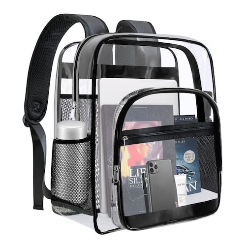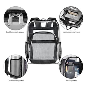 Mochila transparente resistente – Feita de PVC transparente, esta mochila transparente aprovada pelo estádio é à prova d'água e mais durável do que outras; o design transparente ajuda você a passar rapidamente pela verificação de segurança, mais fácil de alcançar para pegar o que você precisa e verifique rapidamente antes de sair em caso de esquecer as coisas. - Mochila transparente resistente – Feita de PVC transparente, esta mochila transparente aprovada pelo estádio é à prova d'água e mais durável do que outras; o design transparente ajuda você a passar rapidamente pela verificação de segurança, mais fácil de alcançar para pegar o que você precisa e verifique rapidamente antes de sair em caso de esquecer as coisas. - Uso multiuso – a mochila transparente é um acessório versátil que pode ser utilizado em qualquer ambiente. Se você estiver indo para o trabalho ou viajando, seu design claro torna conveniente organizar e se preparar para o dia, pois você pode ver e pegar rapidamente qualquer coisa que precisar. - Grande capacidade e compartimentos espaçosos: 1 compartimento principal grande para fichários, laptops e outras coisas para sair; com 2 bolsos internos para facilitar o armazenamento de objetos de valor; 1 bolso frontal espaçoso para óculos de passaporte; etc. Com 1 bolsa com zíper pode ser armazenada, caneta, ingresso, recibo, etc. 2 bolsas laterais de malha para garrafas de água e guarda-chuvas dobráveis. A bolsa transparente oferece espaço decente para diferentes fins. - Pontos de alça reforçados: pontos de cruz reforçados são adotados para fixar a alça com firmeza; as alças de ombro são especialmente projetadas mais largas do que o habitual para aliviar o desconforto em seu ombro; cada alça é costurada com segurança e acolchoada para conforto. - Mochila de presente perfeita: presente ideal para sua família, amigos e casais! Escolha uma como Natal, Halloween, Carnaval, Dia de Ação de Graças, aniversário, presente de aniversário. Se você tiver alguma dúvida, não hesite em entrar em contato conosco. PS: Este item é destinado a maiores de 12 anos de idade.