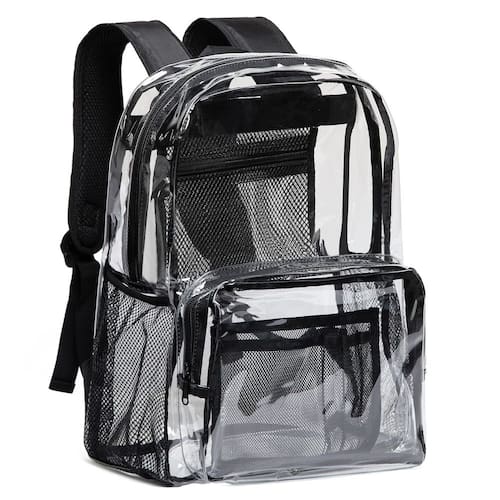 Vorspack Mochila transparente extra grande. Você está cansado de procurar uma mochila transparente adequada devido à política de malas? Vá com calma. Vamos fazer o trabalho! Nossa mochila transparente é completamente utilizável para a faculdade e local de trabalho onde requer verificações de segurança, porque a mochila é totalmente transparente, todos os lados e vistas. É fácil de limpar, basta limpar com uma toalha. Material de PVC mais grosso, resistente e resistente. Você está preocupado com as mochilas que são rasgadas ou rasgadas facilmente? A mochila transparente é feita de material de PVC transparente muito mais espesso. Uma mochila mais grossa e resistente pode suportar tudo o que você precisa para Vorspack faculdade ou trabalho. Ela não ficará rachada ou rasgada mesmo depois de carregar a mochila cheia de coisas por um longo tempo! Pontos cruzados aprimorados. Como uma mochila durável, a ótima costura forte falará por si! Nossas mochilas transparentes com costuras cruzadas e alças mais largas acolchoadas podem fazer o seu trabalho. Multiuso para faculdade, local de trabalho, viagens, atividades ao ar livre. Observação: não aprovado pelo estádio. Tamanho: 47 x 35 x 23 cm (A x C x L), 1 compartimento principal grande com zíper duplo para fichários, livros e muito mais, com 1 bolso interno de malha pequeno com zíper único para celular, dinheiro, cartões, etc., 1 compartimento frontal com zíper único para blocos de notas, óculos, lancheiras e muito mais, com 1 compartimento grande e 3 pequenos de malha aberta para canetas, marcadores, chaves, etc., 2 bolsas laterais de malha para garrafas de água ou dobráveis guarda-chuvas - Tamanho extra grande: 47 x 35 x 23 cm (A x C x L). 1 compartimento principal grande para fichários, livros, almoço, etc., com 1 pequeno bolso interno de malha para celular, cartões, etc., 1 compartimento frontal para estojos de lápis, óculos, etc., com 4 compartimentos de malha para canetas, lenços, chaves, etc., 2 bolsas laterais de malha para garrafas de água ou guarda-chuvas dobráveis - Material de PVC muito mais espesso. Esta mochila transparente é feita de material de PVC transparente sem cheiro, durável e resistente o suficiente para o uso diário. É resistente e macia, você pode dobrá-la conforme necessário, além disso, não rachará mesmo em climas frios - Alças acolchoadas confortáveis: nossa mochila transparente resistente adota pontos de alça reforçados para fixar a alça firmemente. As alças ajustáveis da mochila de plástico transparente são mais largas do que o habitual para aliviar o desconforto e cada alça é acolchoada para maior conforto - Aplique em várias ocasiões: as mochilas transparentes para adultos atendem aos requisitos de faculdades, viagens e local de trabalho. Vorspack mochila transparente para eventos em estádios pode fornecer uma verificação rápida para tudo o que você precisa e fácil acesso - Ótimos presentes: a mochila transparente é clássica e tem para sua opção, pode ser um ótimo presente para sua família e amigos. É adequada para uso no local de trabalho, festivais, atividades ao ar livre e qualquer outra ocasião que precise de uma mochila preta transparente