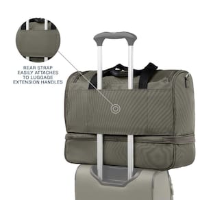 - A alça de ombro acolchoada e ajustável garante um ajuste ideal e um conforto ideal. A alça traseira discreta se encaixa na alça de extensão de uma mala rolante ou giratória para empilhamento seguro e mobilidade sem usar as mãos.