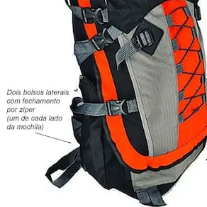 A Mochila Cargueira Para Trekking 60 Litros 6103 também possui bolsos laterais com fechamento por zíper, perfeitos para guardar itens menores e de fácil acesso. Além disso, há dois bolsos telados para garrafas, que garantem praticidade na hora de se hidratar durante suas aventuras.