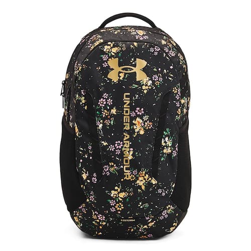 Under Armour Mochila unissex para adultos Hustle 6.0, (004) Preto/Preto/Ouro Metálico - A tecnologia UA Storm resistente à água mantém suas coisas secas - Revestimento superior macio ao toque no material para maior durabilidade - O compartimento secundário pode ser utilizado como bolso para sapatos/lavanderia - Bolso frontal seguro com zíper para armazenamento de itens essenciais e bolso lateral para garrafa de água que cabe em garrafa de 946 ml - Capa para laptop com forro macio — comporta MacBook Pro de até 16 polegadas ou laptop de tamanho semelhante - Correia Molle para pontos de fixação adicionais - Alça superior