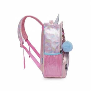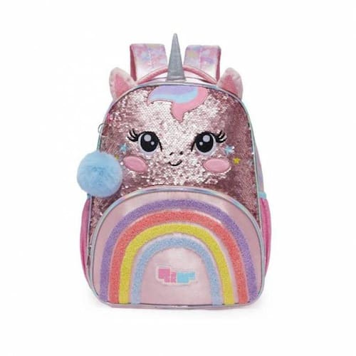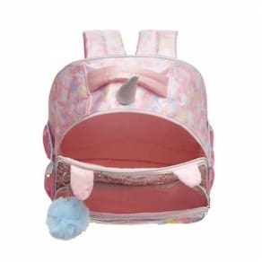 A mochila de costas Pack Me Unicórnio é produzida em Poliéster e PVC Descolada e com material resistente Possui 1 bolso grande com um amplo espaço interno 1 bolso frontal para os demais objetos 2 bolsos laterais pequenos Alças acolchoadas e com regulagem.