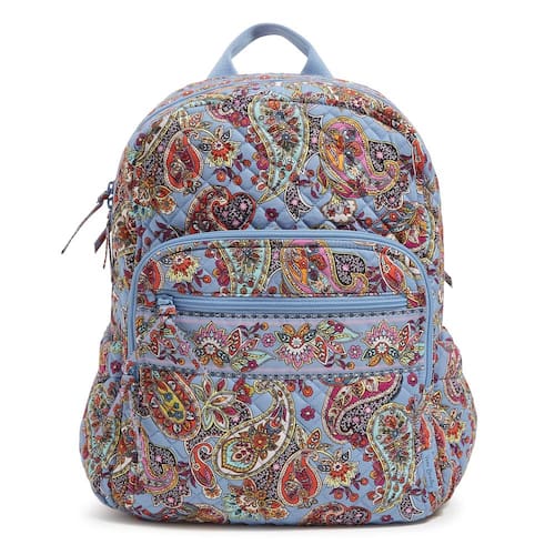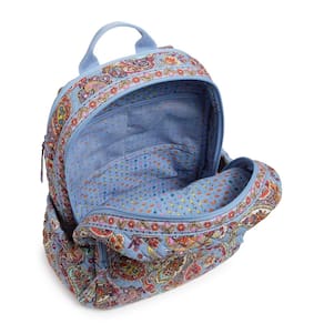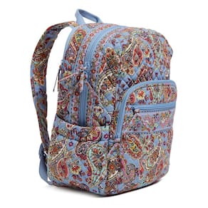 Vera Bradley Mochila feminina de algodão campus, Provence Paisley, Tamanho único - Elegante, leve e com tamanho certo – a mochila campus mede 43 cm de altura, 28 cm de largura e 20 cm de profundidade com uma alça superior de 7,6 cm e alças ajustáveis de 81 cm, com uma manga de carrinho para viagens tranquilas - Chique e segura – Mantenha seus itens essenciais de tecnologia seguros com 2 bolsos internos de malha que funcionam como compartimentos para laptop ou tablet para trabalho ou campus – adicione o fecho superior com zíper e forro de poliéster totalmente impresso e você está pronto para conquistar o dia - Transporte sem complicações – A mochila Vera Bradley Campus é feita de algodão acolchoado leve e colorido e possui 2 bolsos com zíper, 2 bolsos laterais e um bolso traseiro com zíper oculto para que você possa viajar com facilidade e chegar com estilo - Organização infinita – o compartimento frontal com zíper possui 4 bolsos deslizantes, 3 bolsos para caneta e uma janela para identidade para manter seus suprimentos essenciais organizados e de acesso rápido - ALGODÃO RECICLADO À MÁQUINA LAVÁVEL - O tecido de algodão com o qual você está familiarizado foi reimaginado; este tecido sustentável é feito de fibras de algodão reciclado e tem todo o conforto, suavidade e vibração que você conhece e ama.
