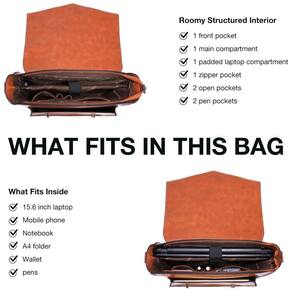 VERSÁTIL Com 2 alças ajustáveis e destacáveis faixa 60 , esta pasta multifuncional pode ser convertida em uma mochila ou bolsa de ombro, adequada para faculdade, trabalho, estagiário, viagens. Uma escolha de presente perfeita BEM CONSTRUÍDO 1 compartimento principal com zíper com 6 compartimentos internos, incluindo um compartimento acolchoado que pode acomodar até um laptop de 15,6 , , 1 bolso frontal externo sob a aba para acesso rápido MANTENHA ORGANIZADO Esta bolsa para laptop com bolsos específicos para seu laptop, canetas e muito espaço para um mouse, notebooks, arquivos, carteira. é fácil de transportar com seus itens essenciais, elegante e ainda assim profissional. ESPECIFICAÇÃO Material couro vegano durável de alta qualidade com hardware de latão resistente Dimensão 15,3 x 11 x 4,9 polegadas, 38 x 27 x Peso 1 kg Marca: Não Informado