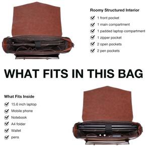 VERSÁTIL Com 2 alças ajustáveis e destacáveis faixa 24 47,6 , 60 , esta pasta multifuncional pode ser convertida em uma mochila ou bolsa de ombro, adequada para faculdade, trabalho, estagiário, viagens. Uma escolha de presente perfeita BEM CONSTRUÍDO 1 compartimento principal com zíper com 6 compartimentos internos, incluindo um compartimento acolchoado que pode acomodar até um laptop de 15,6 , , 1 bolso frontal externo sob a aba para acesso rápido MANTENHA ORGANIZADO Esta bolsa para laptop com bolsos específicos para seu laptop, canetas e muito espaço para um mouse, notebooks, arquivos, carteira. é fácil de transportar com seus itens essenciais, elegante e ainda assim profissional. ESPECIFICAÇÃO Material couro vegano durável de alta qualidade com hardware de latão resistente Dimensão 38 x 27 x Peso 1 kg Marca: Não Informado