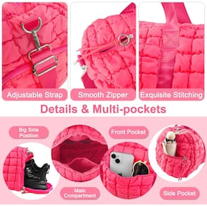 Bolsa de viagem acolchoada de ginástica para mulheres, bolsa grande de fim de semana com compartimento, bolsa organizadora de viagem para exercícios noturnos, bolsa de viagem de avião - Macia e leve: a superfície da bolsa de viagem é feita de material de nylon grosso e durável, e o interior é preenchido com algodão, que é leve e garante que você possa desfrutar de uma experiência de mochila confortável em qualquer ocasião. Zíperes resistentes e costura garantem sua durabilidade. Carregue todos os seus itens essenciais com facilidade, exibindo com confiança seu estilo único e encontre um equilíbrio entre moda e funcionalidade. - Design com vários bolsos: bolso principal grande + bolso frontal + pequeno bolso interno com zíper + dois bolsos internos de malha + bolsos laterais + bolso lateral interno grande. Esta bolsa de viagem grande oferece muito espaço e vários compartimentos para manter seus pertences pessoais organizados. Todo esse espaço de armazenamento está disponível para suas viagens curtas de fim de semana. Os bolsos pequenos podem ser utilizados para organizar seus pequenos itens diários, o que é uma boa companhia para viagens aconchegantes. - Fácil de viajar: a bolsa dobrável atende à maioria dos requisitos internacionais de bagagem de mão. Como um item pessoal para guardar no compartimento superior durante um voo e cabe perfeitamente sob o assento do avião. Além disso, desliza facilmente na alça da sua bagagem e permanece no lugar. Facilita a viagem ao aeroporto. Esta é uma bolsa de embarque ideal para o fim de semana que pode ser usada como bolsa de negócios e também como bolsa de viagem pessoal. - Multifuncional: a bolsa de viagem acolchoada está equipada com uma alça de ombro ajustável e removível, você pode carregá-la de mão ou transversal de acordo com suas necessidades, com esta bolsa elegante multifuncional, você pode se organizar e preparar. Perfeita para esportes, viagens de fim de semana, fitness, viagens, viagens de negócios e pernoites. - Multiuso: a bolsa de viagem pode ser usada como bolsa de negócios, bolsa de fim de semana, bolsa noturna, bolsa de mão, bolsa de acampamento, bolsa esportiva, bolsa de ginástica e assim por diante, é adequada para todos os tipos de ocasiões, e muitas cores podem ser escolhidas, modernas e versáteis. Também é um ótimo presente para sua família e amigos no aniversário, Ação de Graças ou Natal.