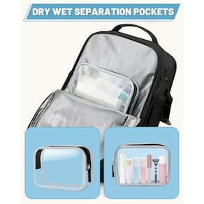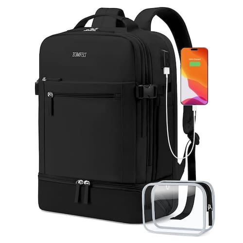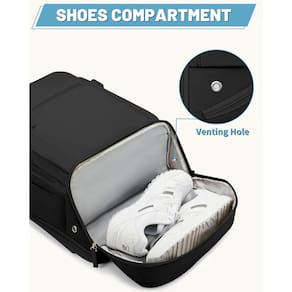 Mochila de mão feminina com compartimento para sapatos, mochila de viagem aprovada para voos com porta de carregamento USB, bolsa de laptop TSA à prova d'água de 17,3 polegadas grande casual mochila escolar para fim de semana - Mochila com vários bolsos: a mochila de viagem feminina é projetada com bolso multifuncional para viagens de 2 a 3 dias, comporta cerca de 30 L. Um compartimento separado para laptop comporta laptop de 15,6 polegadas, bem como laptop de 15 polegadas, 14 polegadas e 13 polegadas. Compartimento principal com grande capacidade e vários compartimentos para 5 a 8 peças de roupas de verão, canetas, carteiras e outros itens, tornando seus itens organizados. A mochila de mão é perfeita para viagens aéreas, sessões de ginástica, viagens de negócios ou uso diário - [Aprovada para voo amigável e confortável] - Mochila de avião: (C x L x A) 33 x 18 x 45 cm, a mochila de itens pessoais atende à maioria dos requisitos internacionais de bagagem de mão, cabe sob o assento do avião ou no compartimento suspenso. Design de malha de esponja respirável na mochila de viagem para mulheres e alças acolchoadas ajudam na ventilação e eliminação de calor, também ajuda a aliviar o desconforto do seu ombro. Com zíperes resistentes, esta mochila garante uma escapada inesquecível de fim de semana. Idade: acima de 12 anos - Bolso molhado e compartimento para sapatos: a mochila de viagem possui um bolso úmido à prova d'água de alta densidade que ajuda você a separar roupas ou toalhas molhadas depois de ficar em um hotel ou apartamento mais conveniente. E há um design atualizado, um compartimento separado com orifícios de ar na parte inferior para sapatos, pode armazenar um par de chinelos ou tênis de cano baixo, permitindo que você mude em diferentes estados de viagem, viagens de negócios e esportes ao ar livre - Design de porta USB: a mochila escolar tem uma porta USB embutida que tem um cabo interno que permite que você coloque o próprio carregador portátil na bolsa e use para celular/tablets. Esta mochila USB oferece a você uma maneira mais conveniente de carregar seu telefone enquanto caminha. É um ótimo presente de tecnologia para ela, de marido, amigos, filha e filho. Observe que esta mochila não se alimenta, a porta de carregamento USB oferece apenas um acesso fácil para carregar - Funcional e segura: uma alça de bagagem permite que a mochila se encaixe na bagagem/mala, deslize sobre o tubo da alça vertical para facilitar o transporte. Um bolso oculto antirroubo localizado na parte inferior das costas protege seus itens valiosos, como carteira, passaporte, carteira de identidade de ladrões ao viajar ou fazer fila. Ela também vem com uma bolsa de acessórios para carregar seus cosméticos e produtos de higiene pessoal