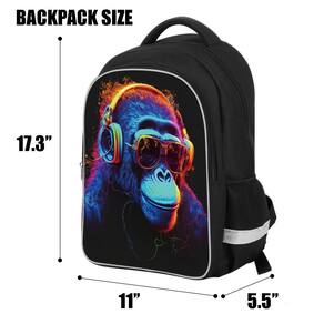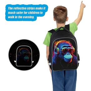 Mochila infantil ZRENTAO, desenho animado refletivo 3D, poliéster 600D e zíperes duplos, bolsa de livros de 17" com design ergonômico para meninos e meninas de 6 a 18 anos, estilo Gorilla Space para crianças em idade escolar