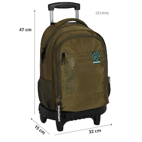 Confeccionada em Poliéster Fechamento em zíper 3 compartimentos espaçosos 2 bolsos laterais para garrafa Possui RODAS e ALÇA DE MÃO Design exclusivo Medidas aproximadas: Altura: 47 cm Largura: 15 cm Comprimento: 32 cm CUIDADOS: - Guarde em um local seco e arejado evitando locais úmidos. - Evite colocar excesso de peso no produto para não forçar os zíperes e costuras. - Proteja os objetos cortantes e/ou pontiagudos evitando o contato direto com o produto. - Evitar altas temperaturas. - Cores claras poderão manchar quando em contato com outros objetos ou roupas de cores pigmentadas.