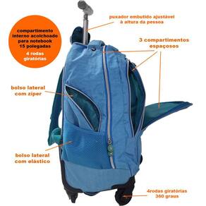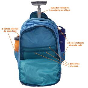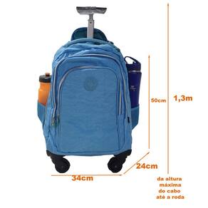 Esta mochila pode ser usada de duas formas: 1) nas costas 2) com puxador - praticas rodinhas que deslizam em giro 360 graus