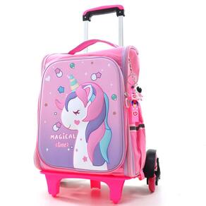 A característica inovadora desta mochila é o seu carrinho com três rodinhas, que não apenas deslizam com facilidade, mas também apresentam detalhes em preto, adicionando um toque moderno e atraente ao visual. Essas rodinhas oferecem a opção perfeita para os pequenos arrastarem sua mochila com facilidade, tornando cada passo uma aventura emocionante.